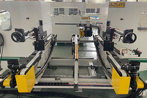 是用來加工地板的端頭榫槽的,他一般分為6軸(實木)8軸(復(fù)合)10軸、12軸(復(fù)合、鎖扣),除第1軸是跳刀軸與縱銑不同外,其余軸與縱銑略同,刀具與鏈條***小距離,以及上壓緊、輔助壓緊裝置也與縱銑相同。