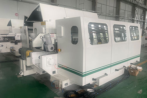 縱銑前端高度應(yīng)為板厚的1.5倍,認知開關(guān)到限薄輪的距離應(yīng)適當,它可根據(jù)送料速度及時調(diào)整??v銑的靠山對加工產(chǎn)品的彎度(直線度)和大小頭有一定關(guān)系,故靠山一定要與鏈條平行,它還起到切削量大小的調(diào)節(jié)作用。側(cè)壓緊裝置位于靠山對面,它的作用是將材料向靠山推進壓實,保持材料正常送入縱銑進行加工。